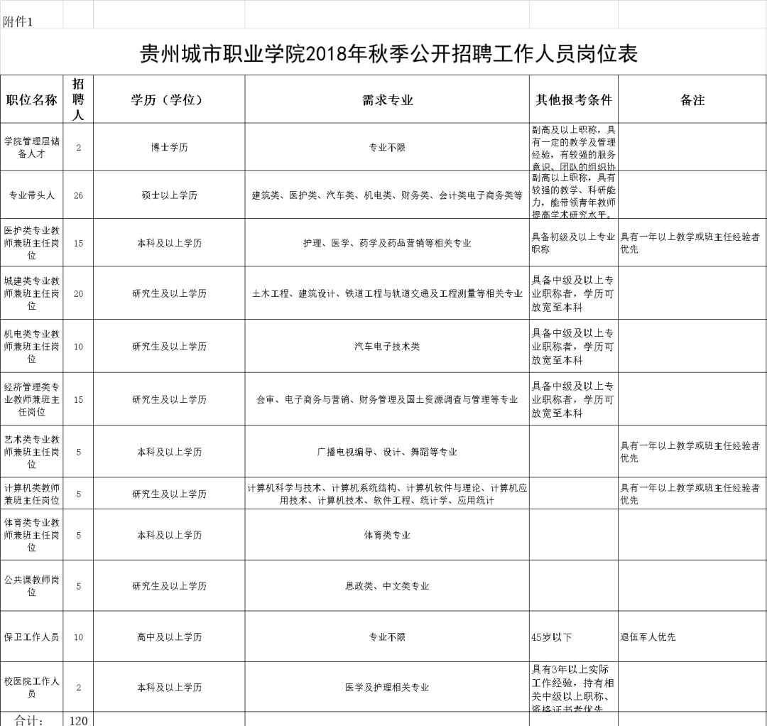 贵州城市职业学院公开招聘120人