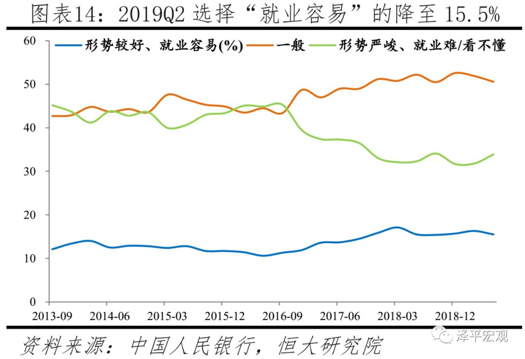 3)求人倍率依赖于求职者和用人单位自愿前往各地公共就业服务机构登记,数据呈长期上升趋势,参考价值有限。2019年二季度为1.22,同比和环比均下降。