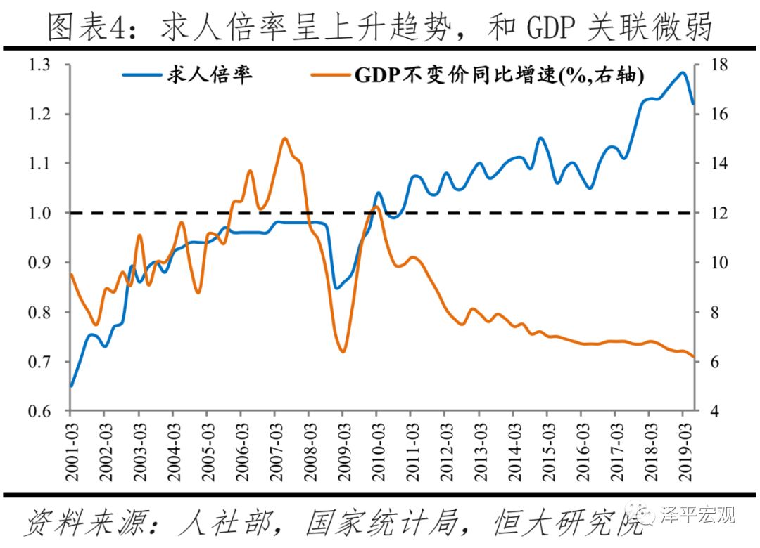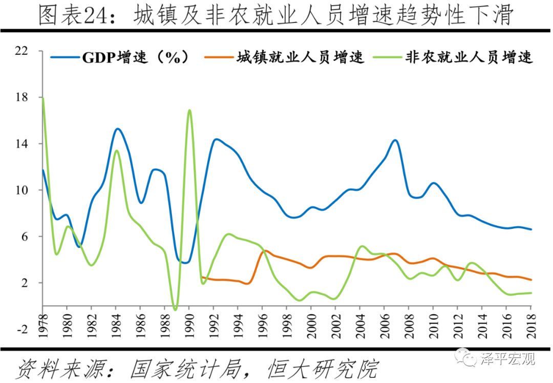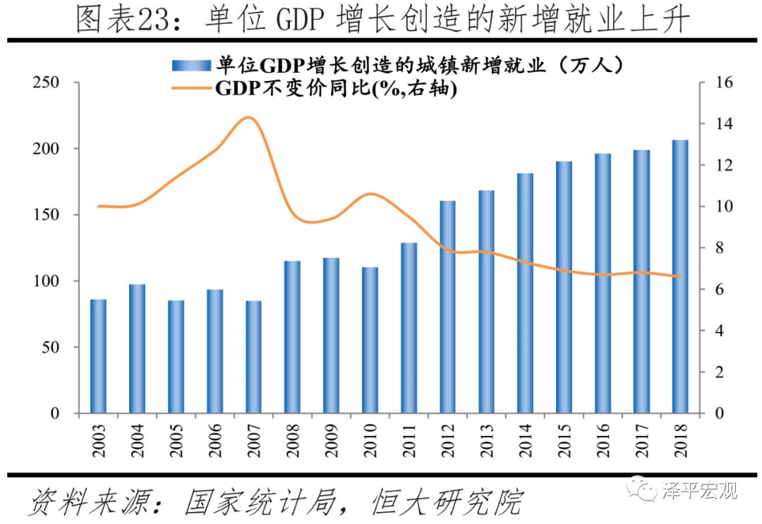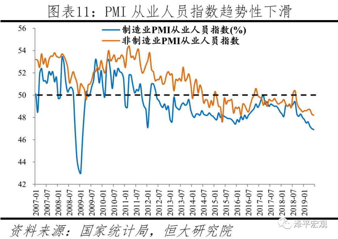 3)政策建议。一是进一步大力优化营商环境、推进落实减税降费以及畅通融资渠道,更好发挥企业这一稳就业主体的作用,特别是民营和中小企业。民营和中小企业是吸纳就业的主体,但过去几年经营环境有所恶化,包括在过去去杠杆、去产能、环保风暴中被一定程度误伤,出口持续低迷加大其生存压力,加之融资渠道不畅、流动性分层。尽管政府已出台多项政策为民营和中小企业纾困,但政策效果仍有待观察。二是加大服务业对内对外开放力度,特别是金融、教育、医疗、电信等行业;加快推进以大城市为核心的都市圈和城市群建设,提高经济活动人口的密度和频度以促进集聚,充分发挥服务业对就业的吸纳作用。三是促进房地产市场平稳健康发展,既要防止过度金融化泡沫化,也要防止主动刺破引发重大金融风险。四是扎实推进高职院校大规模扩招,实施好大规模职业技能培训,促进劳动力技能转换以适应产业转型升级需求。