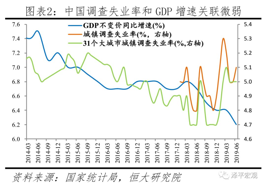 1)城镇登记失业率依赖失业者主动前往人社部门登记,且只针对非农人口,数据波动小,2019年二季度末降至3.61%,与经济走势缺乏关联。