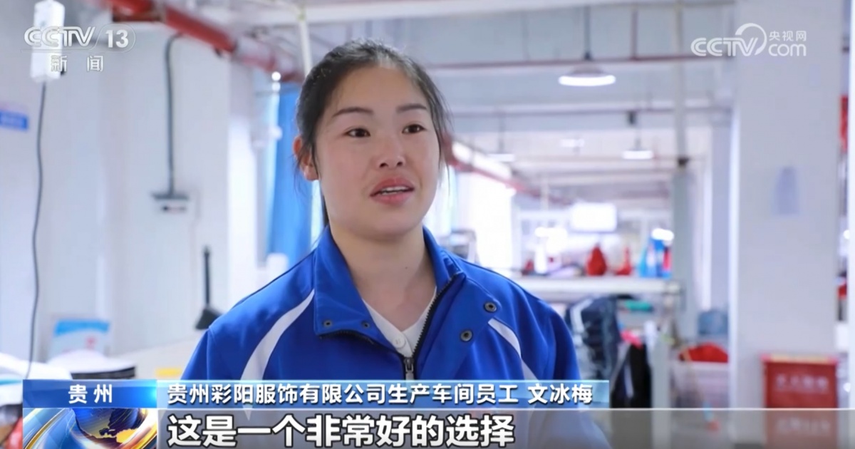 贵州彩阳服饰有限公司生产车间员工文冰梅称:“平均工资四五千元,十几年都在外面打工,回到家还有一份稳定的收入,对于我们长期在外面打工的人来说,这是一个非常好的选择。”