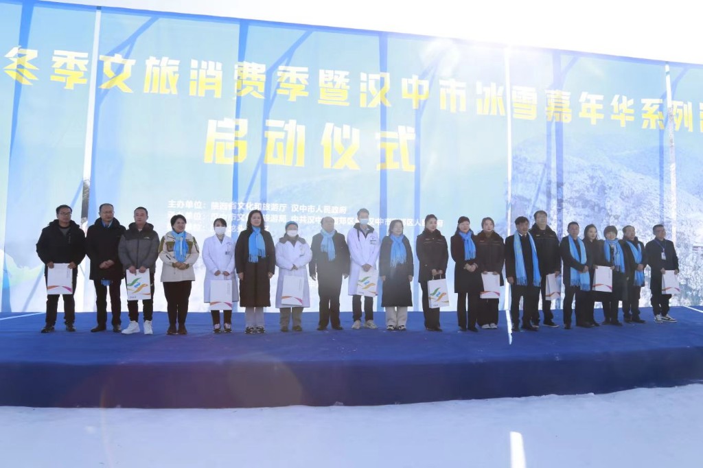 启动仪式上,陕西省旅游协会副会长、秘书长王新宇发布了冬季文明旅游倡议。汉中市文化和旅游局局长徐红菊发布了汉中冰雪嘉年华系列活动。与会领导向旅游志愿者、人民教师、医务人员、环卫工人等群体赠送了冬季文旅礼包。汉中龙头山景区作了发言。汉中市各县区政府分管副县区长、文旅局局长,4A级景区负责人,新闻媒体,省内外重点文化旅游企业、市民游客近千人参加了本次活动。