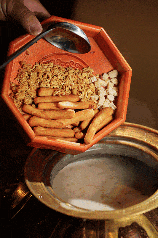 推荐理由:草原上的限定风味,老砖茶配鲜奶再加上黄油、炒米、牛肉干熬制的咸香,肉香、奶香、茶香混合在一起,趁热大口喝,瞬间让人温暖起来。