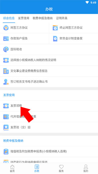 4、税收法规库、涉税专业服务、办税指南、政策解读、办事统计。