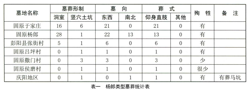 杨郎类型墓葬具有如下特点: