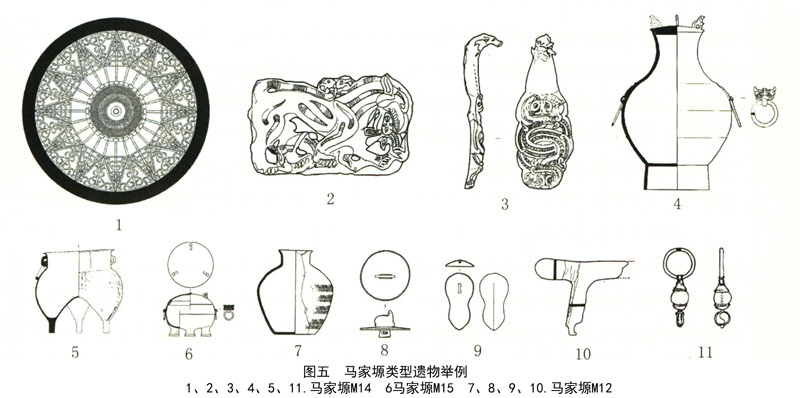 从目前的发现看,马家塬类型的年代较为一致,即均为战国中晚期。其主要分布于甘肃东部的张家川、秦安、清水等县和宁夏西吉县,宁夏西吉陈阳川墓地虽然现在地处宁夏回族自治区,但在地理上与甘肃东部地区并没有阻隔,西吉县和张家川县均处在陇山西侧,分别位于葫芦河上下游,古代交通道路往往沿着河流,顺流而下,两地交通并不困难。此外,笔者曾在甘肃合水县博物馆也见到诸多征集来的马家塬类型遗物,可见西戎文化马家塬类型的分布范围或许可以囊括甘肃平凉、庆阳地区。