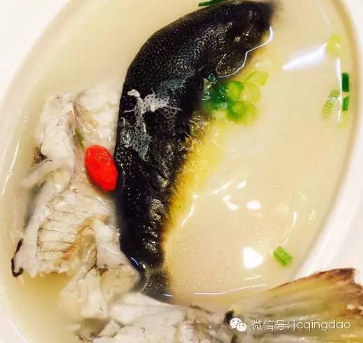清炖河豚鱼。放心吃吧,厨师处理的很干净,你不会中毒的。还有,河豚鱼皮有丰富的胶原蛋白,不过由于外层比较粗糙,建议你吃鱼皮的时候把正面卷在内里吞下即可,女生吃了养颜的。