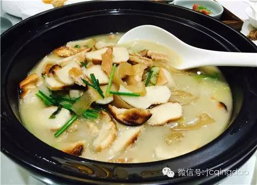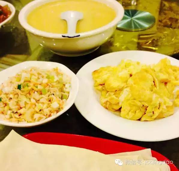 又一道特青岛的家常菜。市场上买回来的小杂鱼,经过厨师的巧妙烹饪,汤鲜肉嫩。尤其是带有饹馇的小饼子蘸上鱼汤吃,满足啊。