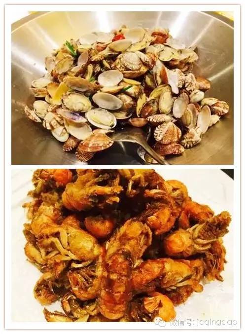 辣炒红岛蛤蜊。正宗的红岛蛤蜊,都不算很大哦。炸青岛老虾虎。真正的青岛虾虎,其实就是很丑的蝼虾,味鲜。