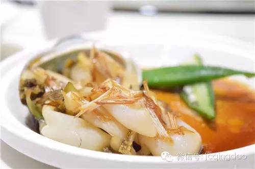 鲍鱼条烧裙带,每份48元。新鲜鲍鱼采用妈妈家庭做法,切条,配上鲜嫩的海带苗,加入自发蹄筋烩制,酥软可口。