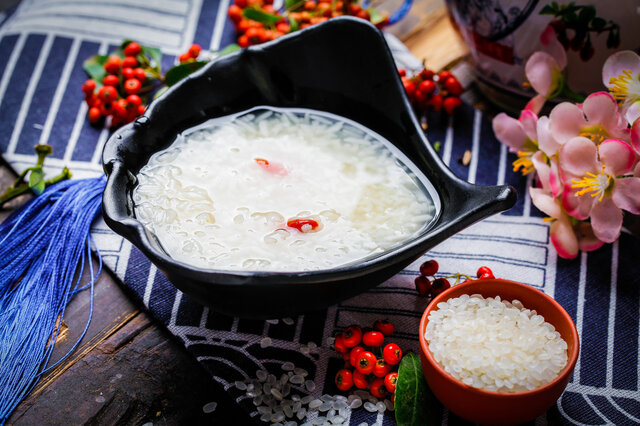 孝感米酒是湖北省孝感市传统的风味小吃,具有千年历史的地方名吃,选料考究,制法独特,价格低廉,它以孝感出产的优质糯米为原料,以孝感历史承传的蜂窝酒曲发酵酿制而成。孝感米酒白如玉液,清香袭人,甜润爽口,浓而不沽,稀而不流,食后生津暖胃,回味深长。一九五八年,毛泽东主席亲临孝感视察工作时,品尝了孝感米酒后称赞“味好酒美”。孝感米酒具有活气养血、滋阴补肾的功能,产妇和妇女经期多吃,尤有益处,是老幼均宜的营养佳品。 【 详细>>】