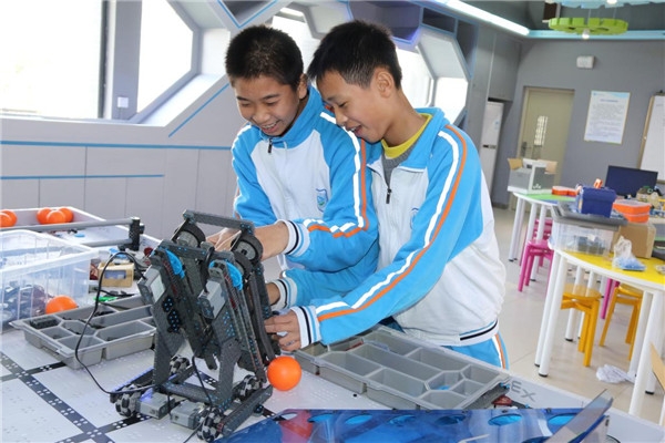 这样的事例太多了,比如学生原创模型飞机,起名叫“会飞的猪”、“愤怒的小鸟”等;学生制作的仿生多足机器人,像昆虫一样爬,还能自动避障。很多家长也感同身受:比如,自家孩子上了《助眠香薰的设计与制作》课后,给父母带回了亲手制作的香薰;当爷爷奶奶过生日时,孩子献上了独一无二的“爱的三行诗”宫廷扇;学生自己采访拍摄剪辑的校园新闻、自编自导自演的文艺晚会……