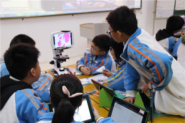 学科与信息技术的融合应用是问学课堂的亮点。课堂以信息技术为支撑, 创设真实的学习场景,以问题为导向、以任务为驱动,将自主学习、合作探究相结合,实现效率提高、素养提升。同时,课堂以多元智能为依据,建立个性化教学评价体系。以“创新素养”“高阶思维”等关键评价指标,牵引科学教研组主动进行课堂变革,打造高品质课堂。