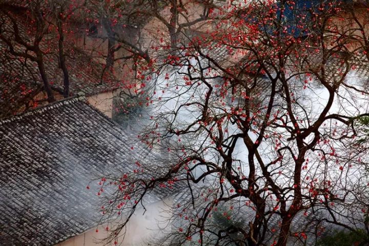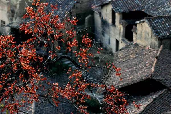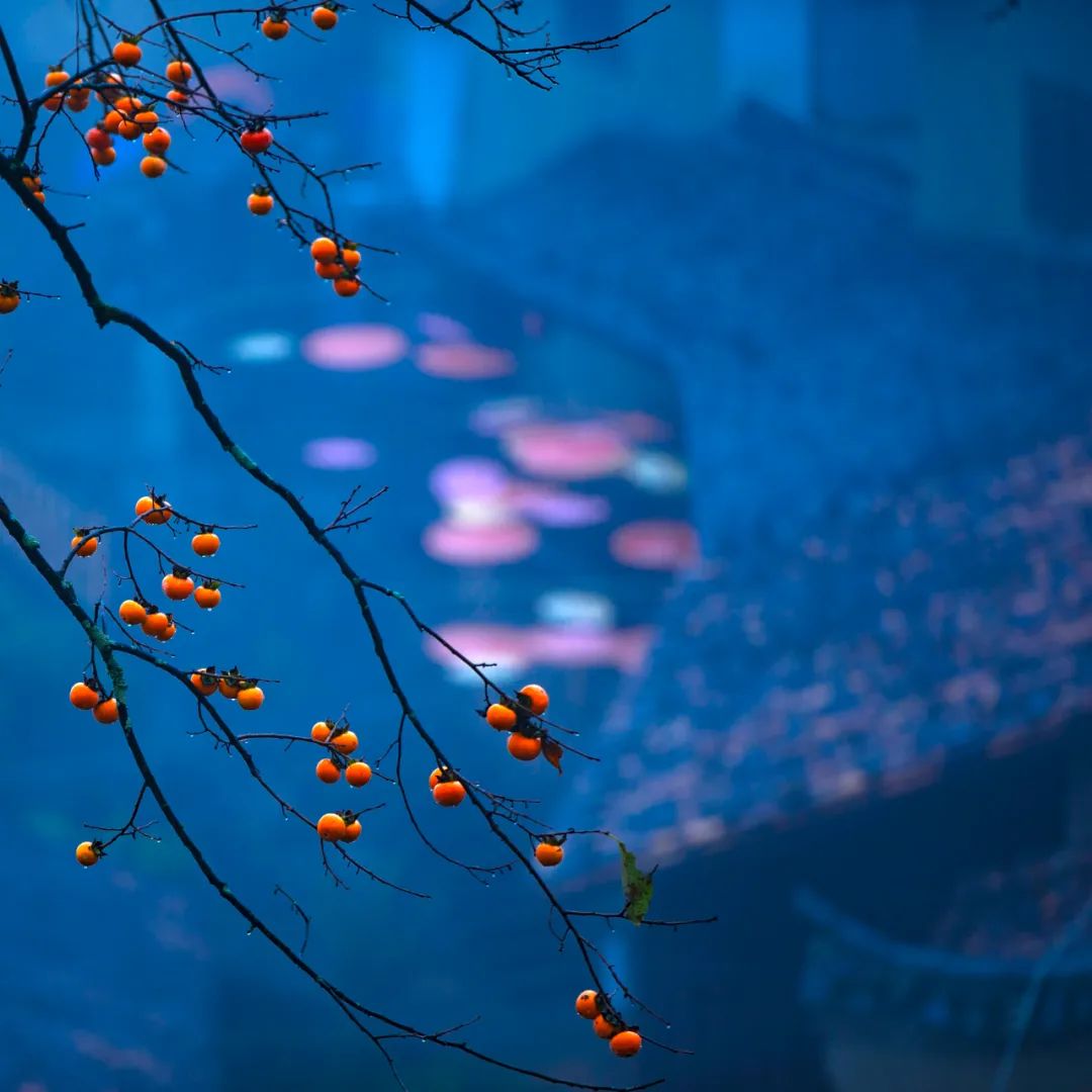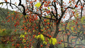 初冬,寒意已浓,那红艳的柿子,依然挺立在枝头,像一盏盏吉祥的红灯笼,照亮了初冬,也温暖了人们的心间,筑起一道美丽的风景令人陶醉,也勾起人们童年深深的记忆。