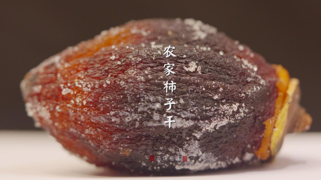 比如晒柿干,把柿子削了皮,一串串挂在梁上,或用篦子平铺,反复揉捏果肉使其松散,经过风吹日晒,结出厚厚的白霜。