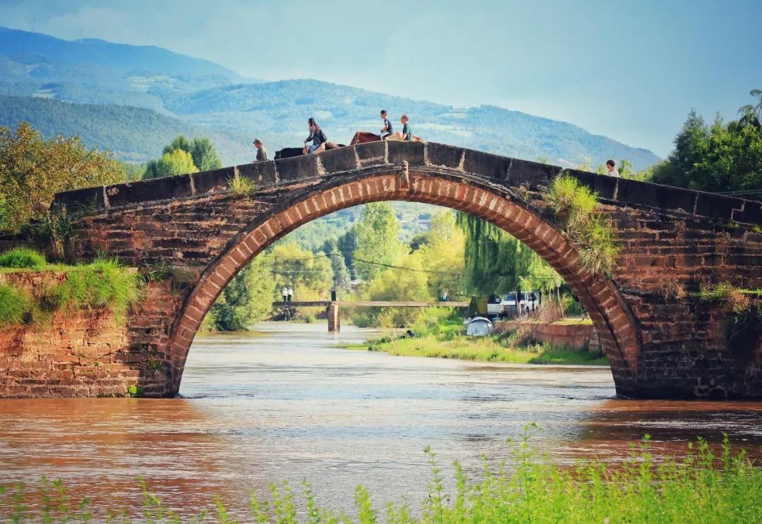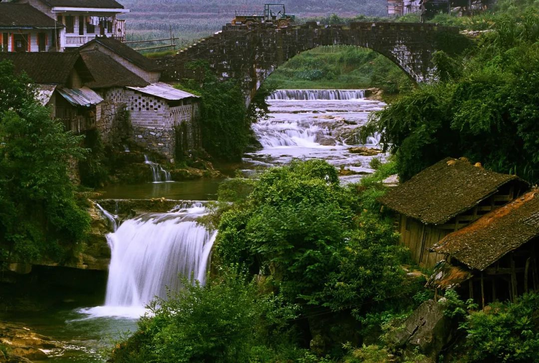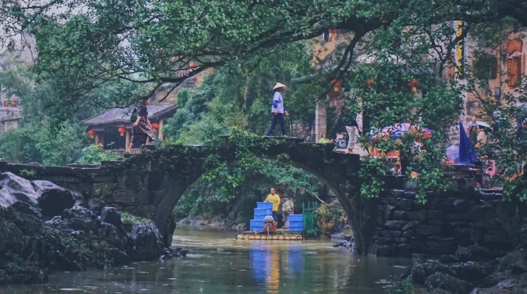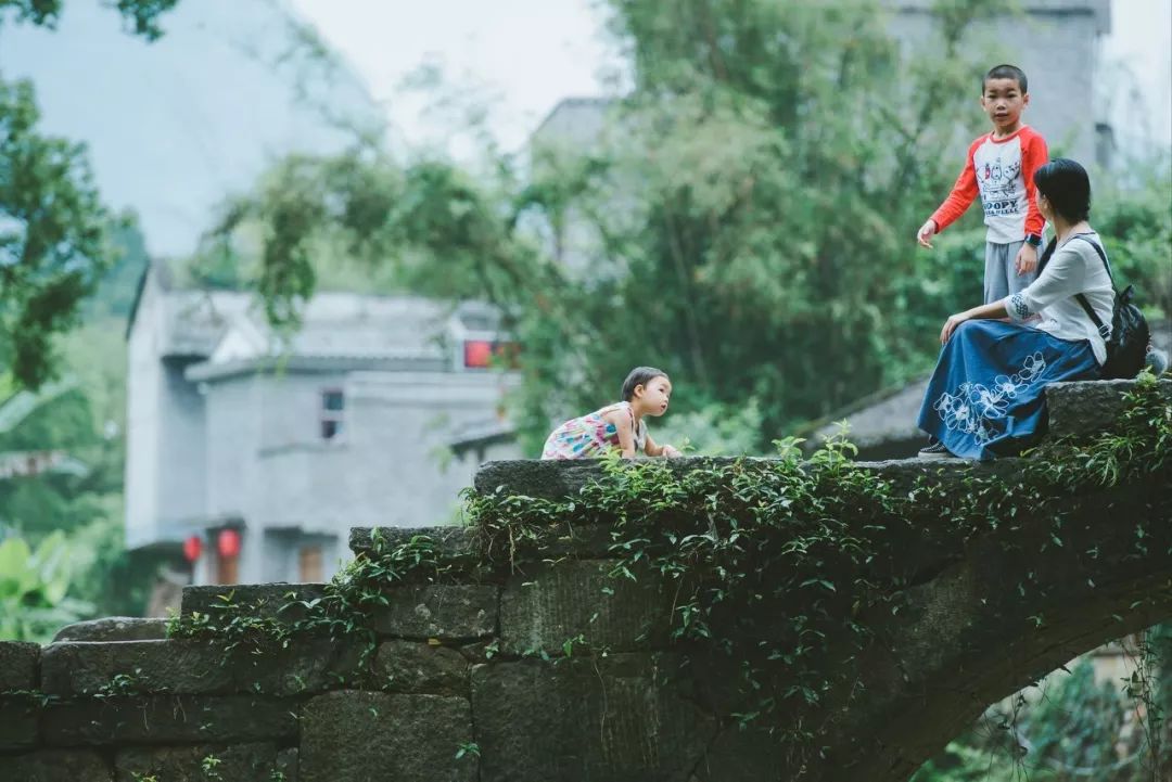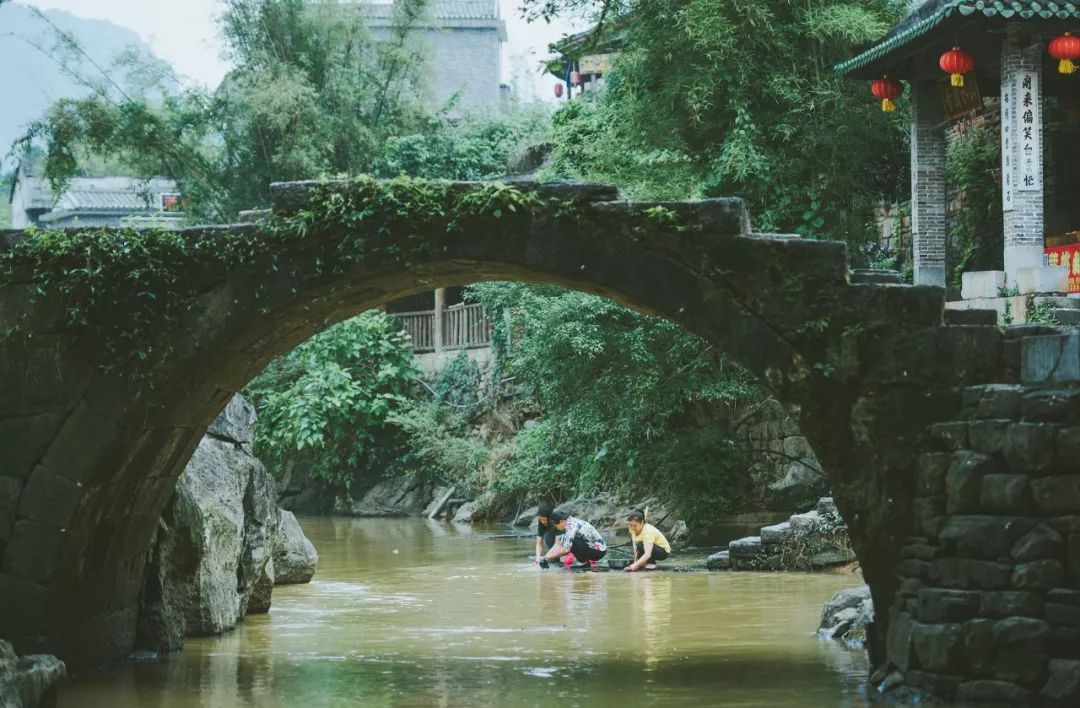 石桥上,小河边,全部都是葱茏的绿色,村民打着古井里的水,在河边浣衣,孩童们在一旁自在的玩耍,没有现代化的打扰,一切都是那么地安静平和。