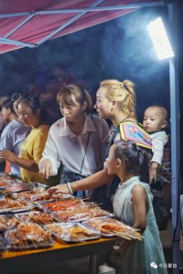 从日落开始,街上的人已经络绎不绝,入夜后就更加热闹了。他们围在美食、衣服鞋袜、日用品、水果蔬菜等各式各样的摊前,或自己一人,或带着自己的家人,或和自己的朋友,三三两两,悠闲自在。