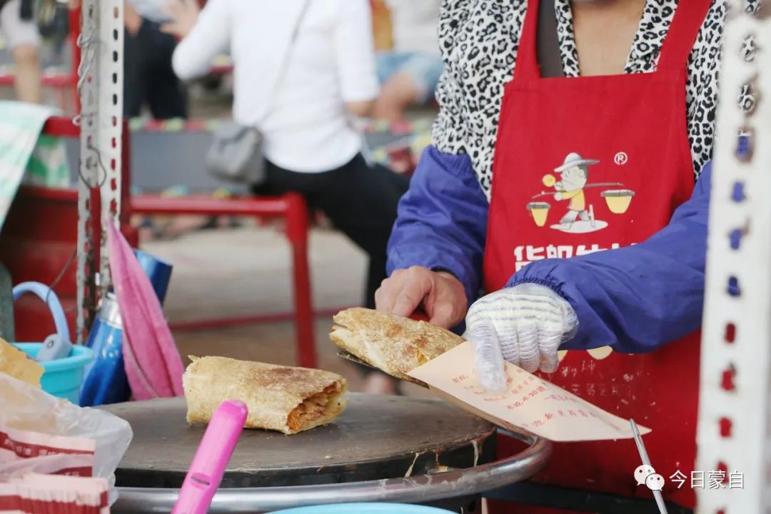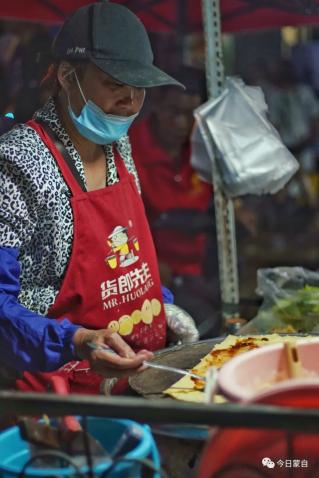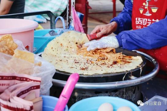 在蒙自城里的每个角落总是能偶尔看到煎饼果子的影子,大多是一个摊子,但是不固定,可能今天看到它在超市旁,明天看到它在学校旁,后天你就找不到了,想吃个煎饼果子,也太难了吧!
