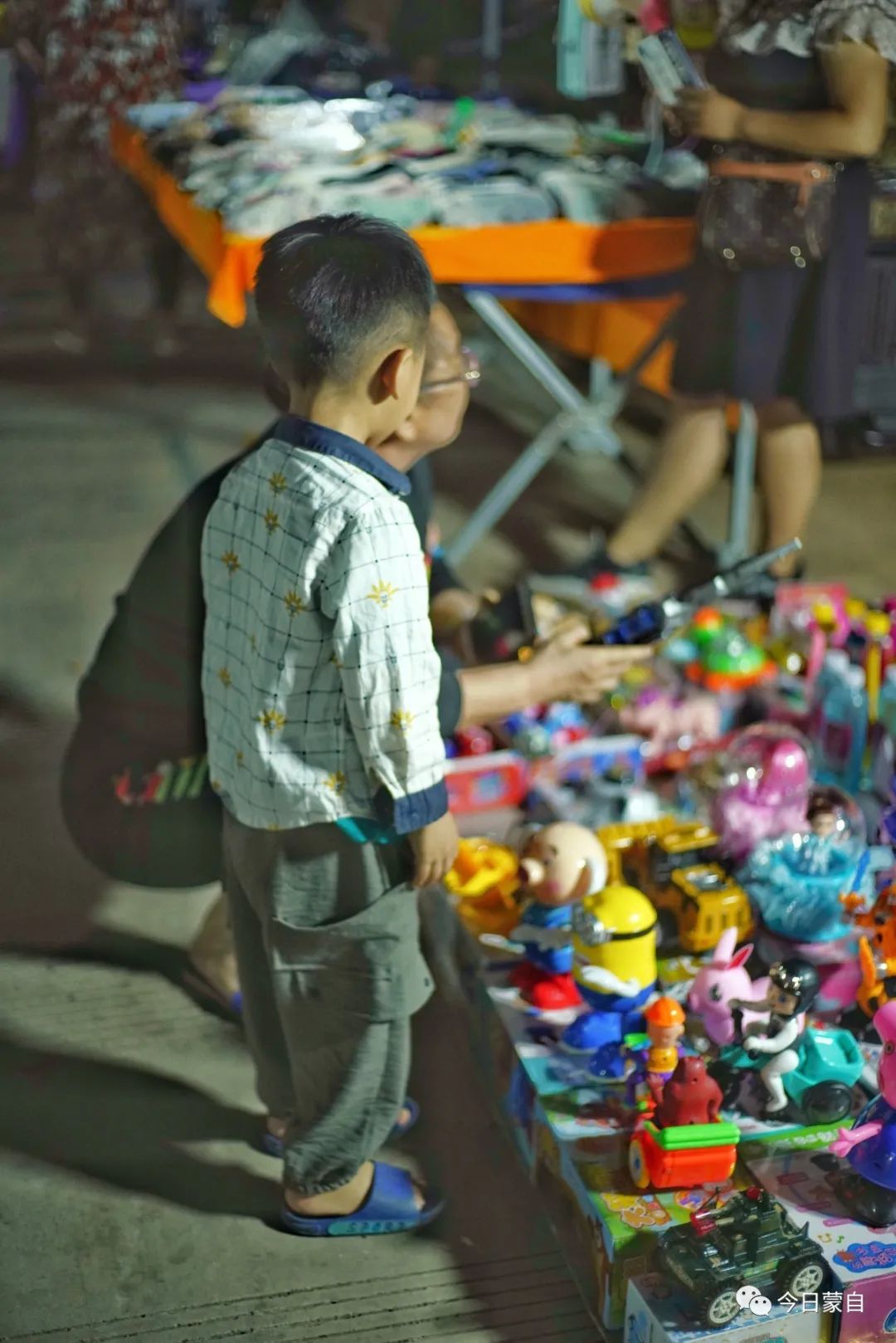 这条街,大概是蒙自夜晚最热闹的地方。从下午6点开始,人群就陆陆续续的多了起来,摆摊的摊主、前来逛夜市的市民、负责维护秩序的执法人员......