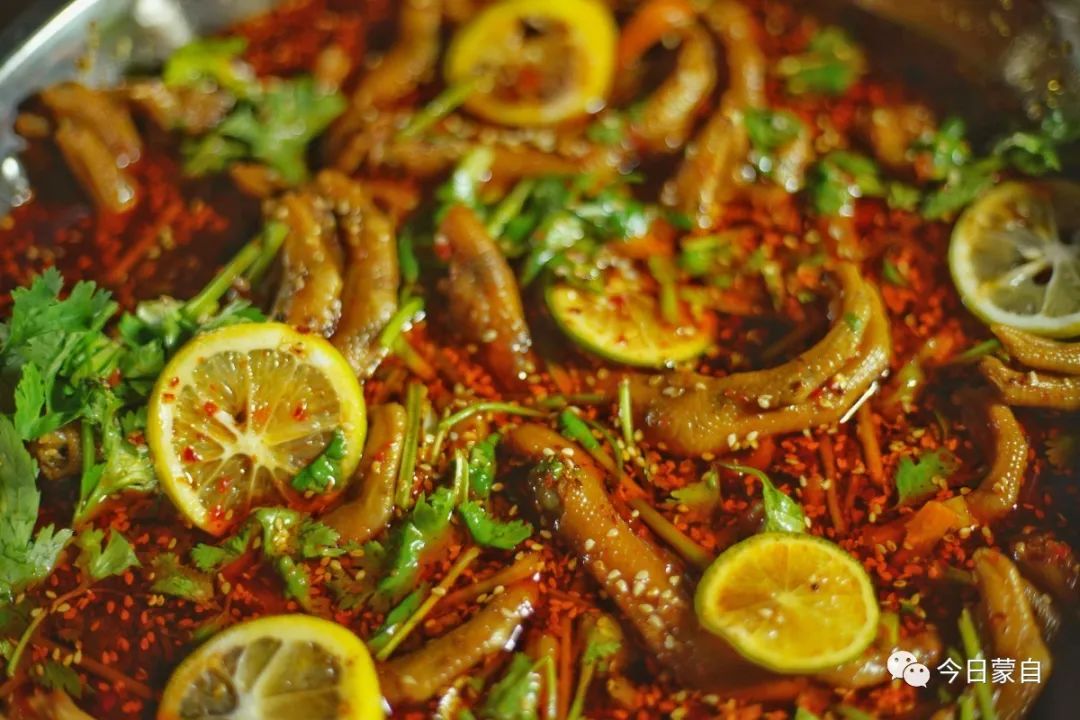 鸡脚里面加入柠檬、芹菜、木姜子、萝卜、辣椒等果蔬腌制,泡的越久,这些料融入到鸡脚的味就越香。买鸡脚的同时老板会附带送点配菜,而且这里的鸡脚超大一只,每只都只要2块钱!