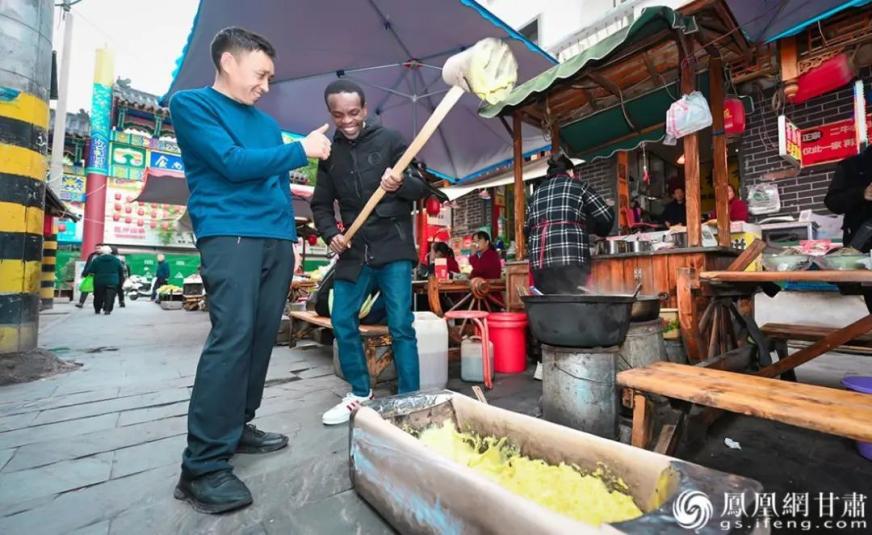 吃土豆长大的迪娜尔,从哈萨克斯坦来到中国,解锁了土豆新吃法——陇南洋芋搅团。迪娜尔点赞说:“做法新奇,口感细腻Q弹。”日前,10位就读于兰州大学国际文化交流学院的留学生跟随“凰家体验官探游陇南”线下主题活动踏访甘肃省陇南市武都区,一大早就来到了极具烟火气的美食集结地,开启味蕾探奇之旅。