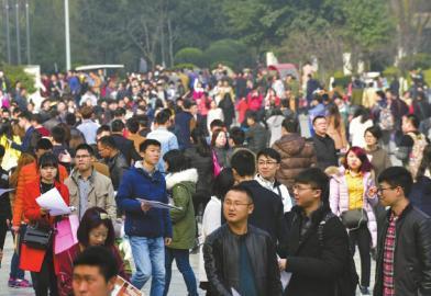 2月28日,数万人涌进成都春季特大型招聘会现场求职,火爆堪比春运。