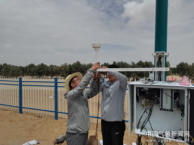 技术人员在陕西榆林定边野外综合观测试验场维护观测仪器 图/高建伦