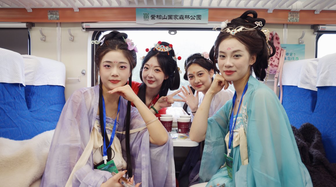 值得一提的是,Y800次畅游关中平原旅游列车使用的车体正是前段时间在网上“火出圈”的25K型双层客车,车厢内设有上下两层,下层可体验“贴地飞行”的感觉,上层的视野更为宽阔。当日的首发列车也热闹非凡。列车从西安站驶出后,中国舞、乐器演奏等精彩节目随即在车厢展开,为旅途增添了许多欢乐。三十多位自媒体达人和主播通过直播的形式,对文艺演出以及途经景区进行介绍,并与旅客进行互动,让整个旅程充满了欢声笑语。
