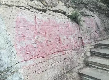 此外,涂抹面积比较大,一个字体往往有30厘米长。“上山检查时我比对了一下,比手掌还大”。涂抹分布广,一共13处。最麻烦的是,用的并不是油漆,“油漆只是附着在表面,相对好清理,这次用的是涂鸦的材料,渗透性极强。加上那些石头也风吹日晒,风化严重,渗透到里面很难处理。”