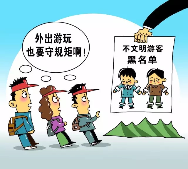 今年5月底,国家旅游局下发了《国家旅游局关于旅游不文明行为记录管理暂行办法》,确定将游客九类行为纳入“黑名单”:
