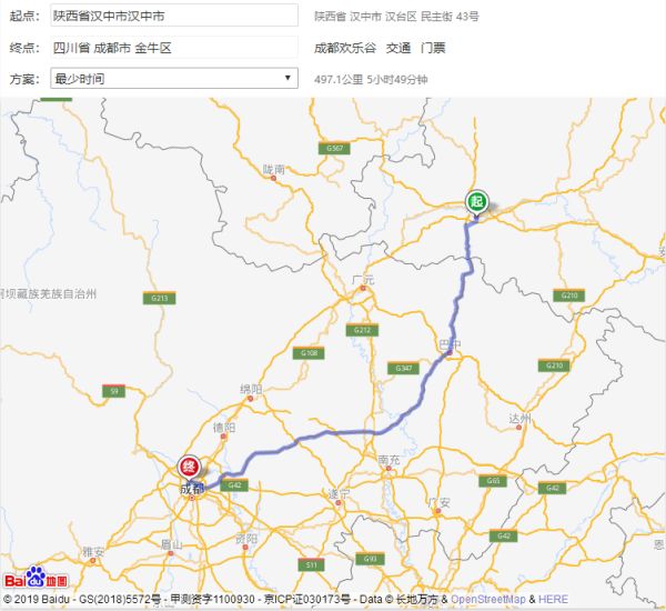 5.汉中到成都路线规划