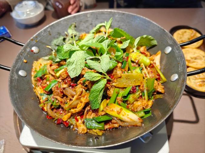 酸笋火锅结合了广西酸笋和贵州酸汤的特色,汤底发酵的酸味并不臭,反而鲜美无比。酸笋薄脆可口,搭配各种新鲜菜品,让人胃口大开。
