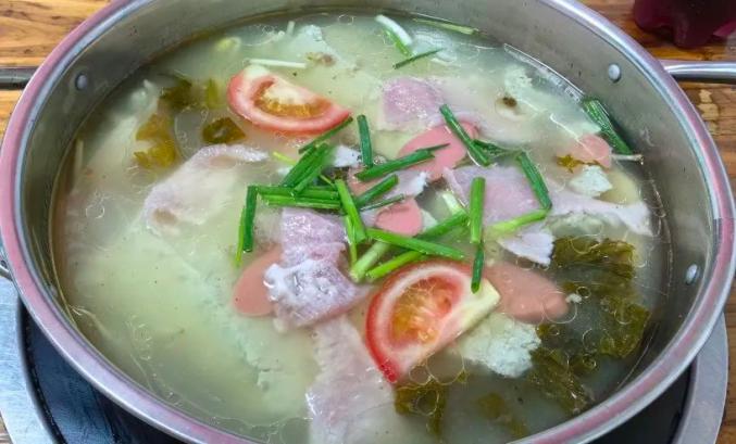 经过油炸、蒸、煮的猪肘子变得软糯可口,再配上布依传统酸菜高汤炖煮,肥而不腻、鲜香味美。酸菜蹄膀火锅不仅口感丰富,还能开胃解腻,是冬日里的一大美食。