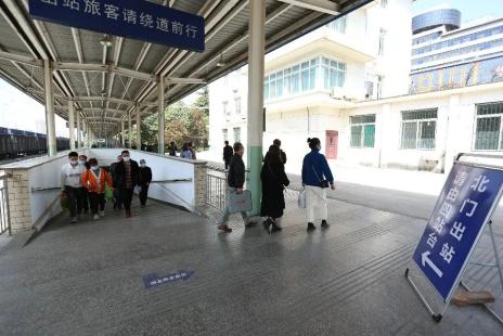 乘车旅客由一、二、三站台下车时,经由原进站地道行径至四站台,再由北门出站;四站台下车旅客直接由北门出站。