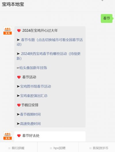 温馨提示:微信搜索公众号【宝鸡本地宝】,关注后在对话框回复【春节】查看宝鸡免费/特惠活动、春节游玩特色好去处、各大景区游玩攻略等。