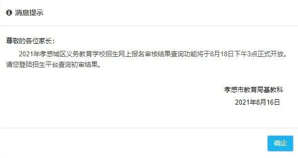 2021年孝感城区义务教育学校招生网上报名初审结果今起可查询