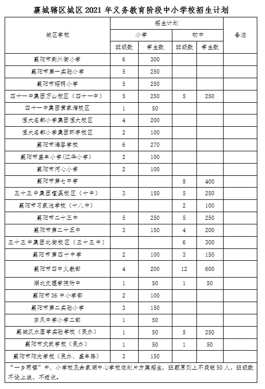 2021襄城区义教学校招生入学方案