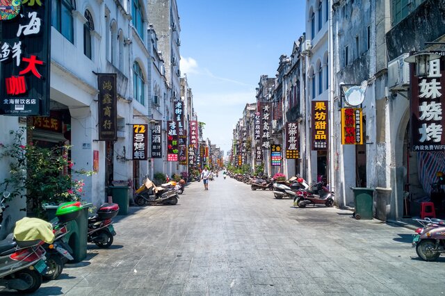 北海老街始建于1883年,由珠海路、沙脊街、中山路组成,是一条有近二百年历史的老街,沿街全是中西合璧骑楼式建筑。除了让人一睹为快的美景外,北海老街还是北海著名的美食街,老街美食以老牌小吃为主,有炒螺、糖水、虾饼、卷粉、猪脚粉、蟹仔粉、牛腩粉、炒冰等代表北海的经典美食。北海老街上还开着各种宝藏美食店,比如李姨虾饼、明英卷粉、付姨蛋散、肥仔猪脚粉等,它们是当地人都会去光顾的老店。如老街上的李姨虾饼店,曾上过《舌尖上的中国》。此外,老街里还有各种甜品店、咖啡馆等。在这里可以享受北海在地美味,尤其是各式...海鲜美食。北海老城还被国家旅游和文化部评为国家级夜间文化和旅游消费集聚区,北海老街成为国家级夜市街。 【 详细>>】