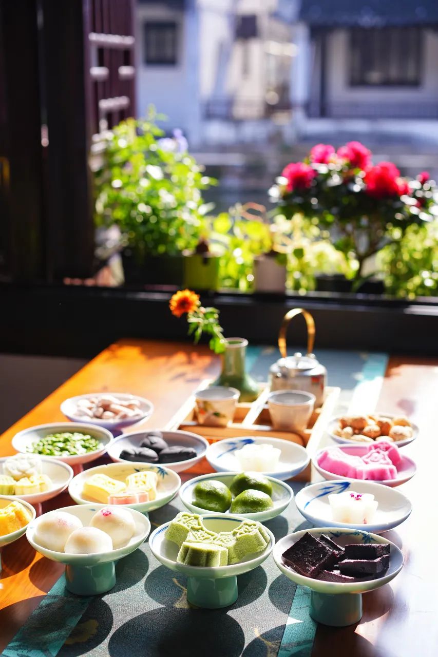 早在明清两朝,苏州茶食就与嘉湖细点比美。今天,无论是下午茶的场景构建,还是旅游产品的研发销售,或者是“诗和远方”的践行,在雅致生活的赛道上,苏州茶食仍是一大亮点。枣泥麻饼是长销不衰的经典产品,上海游客逛观前街的首选,总要抱一筒回来,微波炉里叮一下,味道更赞。津津卤汁豆腐干大小与一枚普通邮票相仿佛,经油炸后以老卤煨煮,纸盒包装,身骨软柔,色泽沉郁,甜不压咸,咸不扰甜。用牙签戳起磨牙,是看追剧的标配。