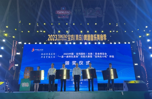 8月2日晚,我市举行2023中国.宝鸡国际(丝路)美食博览会“一县一桌特色美食”技能大赛暨“宝鸡名小吃”评选颁奖仪式。“凤翔海子全羊宴”等5桌美食获得“一县一桌特色美食”金奖,市领导陈小平、李武发为获奖者颁奖。