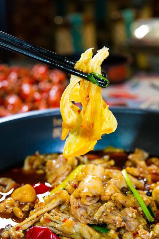 跳跳蛙是店里的招牌,也是我的最爱 。里面的灯笼椒、小米辣等食材的品种和用量都是经过老板研究配比的,也是因为这样才成就了长沙只此一锅的跳跳蛙。