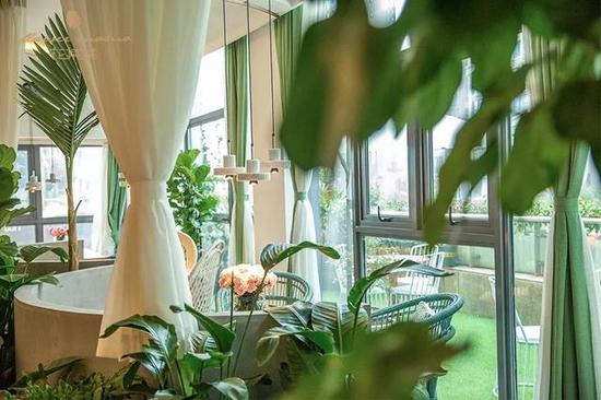 你很难想象在一个公园里,会有这样一个地方的存在,一座大大的玻璃房,几座白屋子,外面还有一片绿茵草地包围着餐厅。