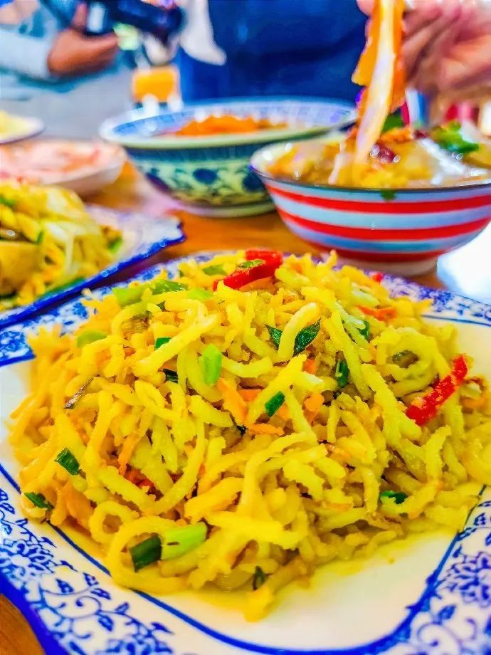 ②洋芋囷囷:定西盛产土豆,在定西的一周里,几乎每天都能吃到土豆做成的各种美食。当我在陇西解锁了洋芋囷囷之后,它立刻成了我的心头好!洋芋囷囷是用土豆和面粉拌匀之后蒸、炒而成的,很美味,我自己都快承包一份儿了!