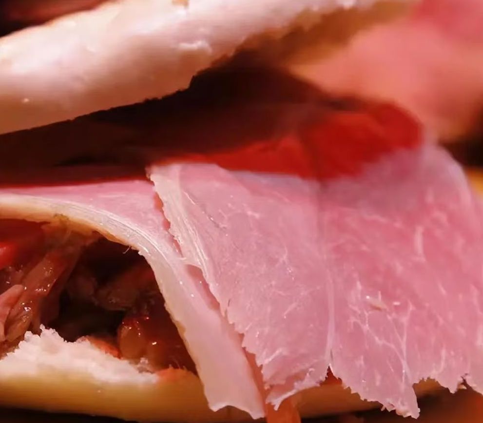 陇西腊肉:非遗技艺制作,肥瘦相间如玛瑙,夹入馍馍咸香适口。