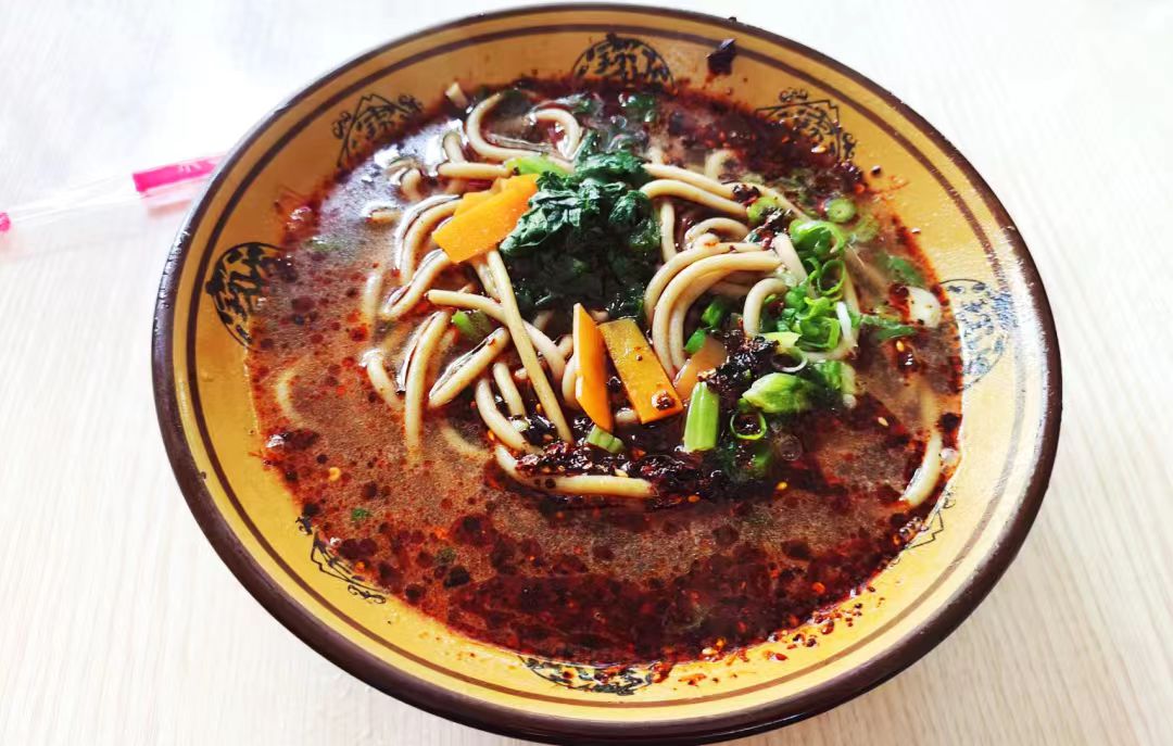 饸饹面:荞面与清汤的组合,加上芹菜菠菜等,低糖又美味。清汤看似简单,却是在很多种香料中找到的最佳配比,只有尝过才知道。