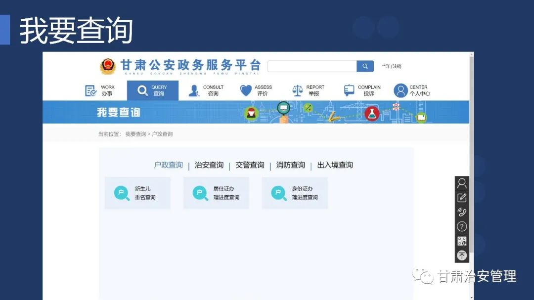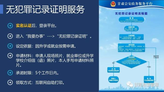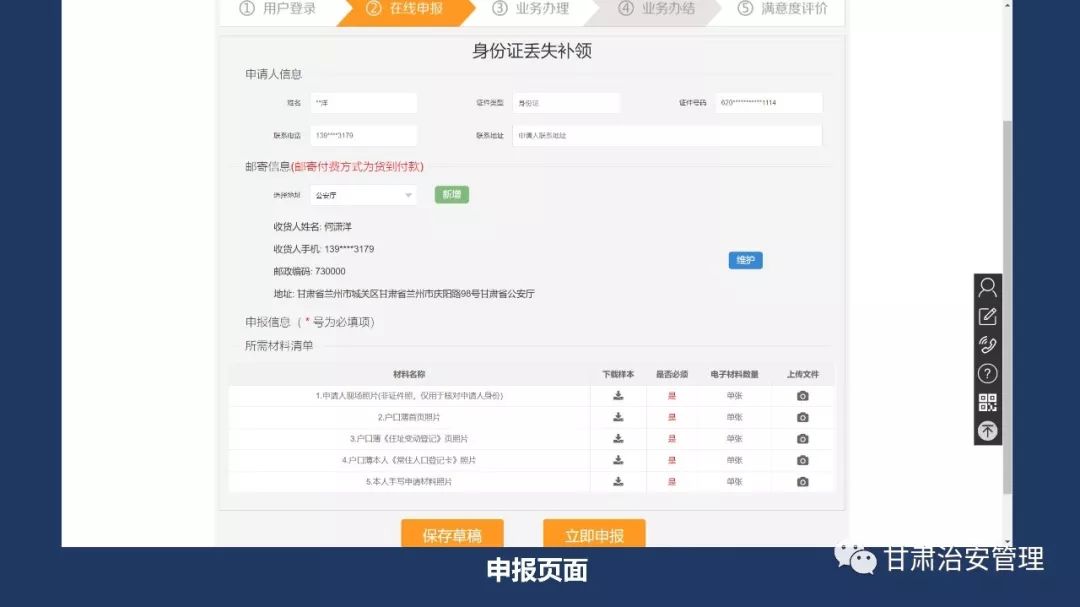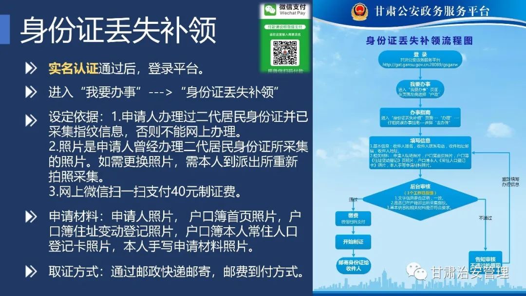 二、网上办理业务。办理身份证丢失补领、临时身份证明、居住证申领、无犯罪记录证明等业务时,也可直接登录“甘肃公安政务服务平台”,网上预约办理并查询审批进度。