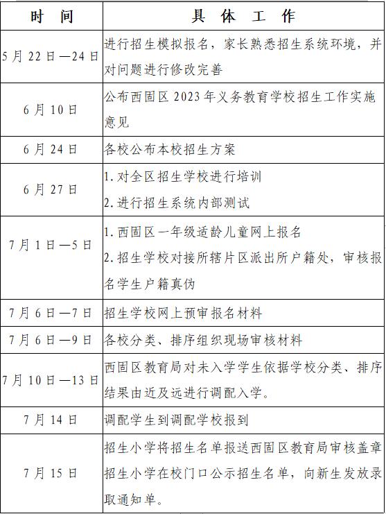 1.6月10日,公布《2023年七里河区义务教育招生入学工作实施方案》,辖区各小学于6月23日-30日公示《招生简章》。学校《招生简章》要明确招生条件、招生范围、招生具体时间、招生办法、报名网址以及家长报名时需提供的证件资料等,同时各校要做好招生的风险评估工作。
