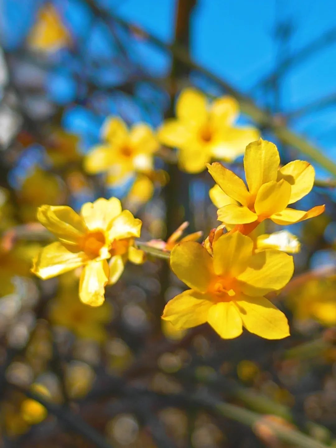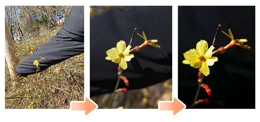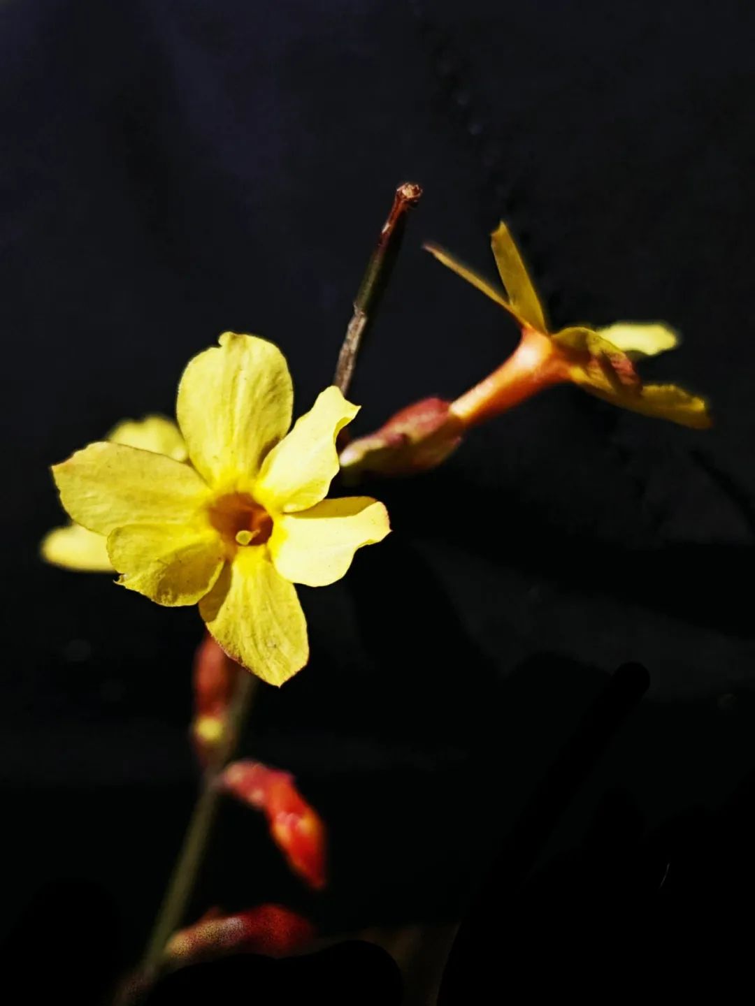 借用黑色的衣服或准备一张黑纸当做背景,放在选好的花朵后面,拍下特写照片。同样通过修图软件,调节亮度、对比度、饱和度等参数,得到一张艺术照般的春花特写图。