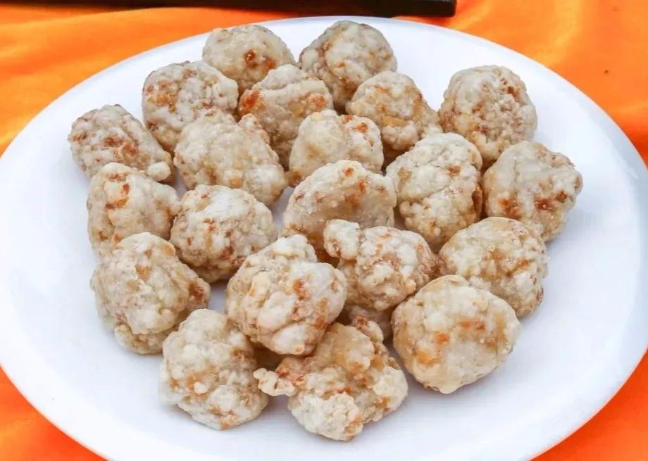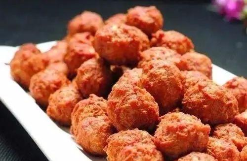 炸肉丸是松口镇的特色美食,在松口几乎所有饭店酒楼都有炸肉丸这道菜,也常常出现在家常餐桌。炸肉丸是用猪肉与薯粉制成,通过油炸后,一个个金灿灿、圆滚滚、香喷喷,也象征着松口人民对于团团圆圆的冀望。