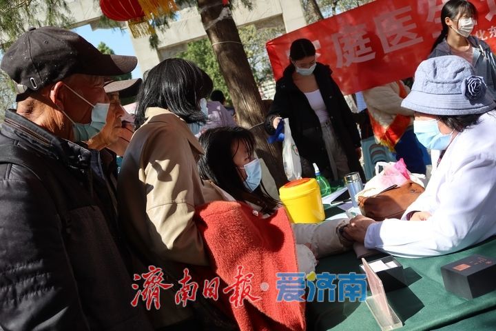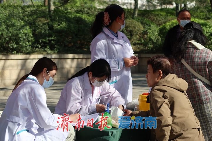 一旁,还有一块“医疗服务区”,一家中医院的专家团队正为游客提供免费血压、血糖检测和健康咨询,吸引了不少中老年人体验。这里也是人气最高的一个区域。
